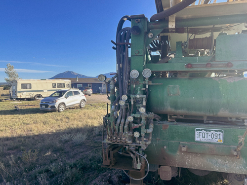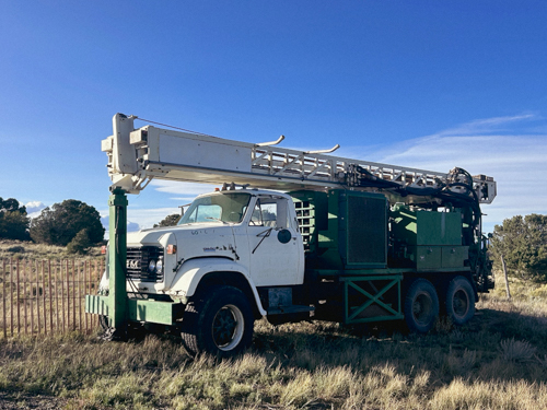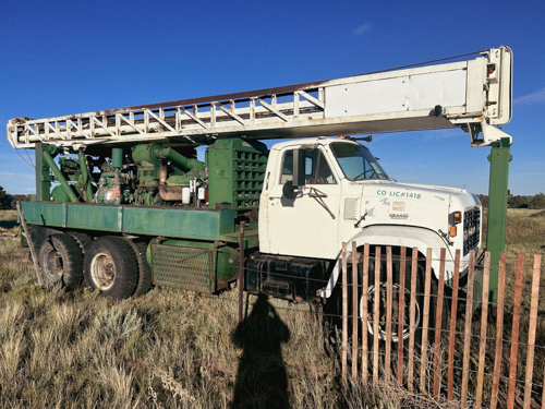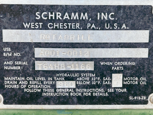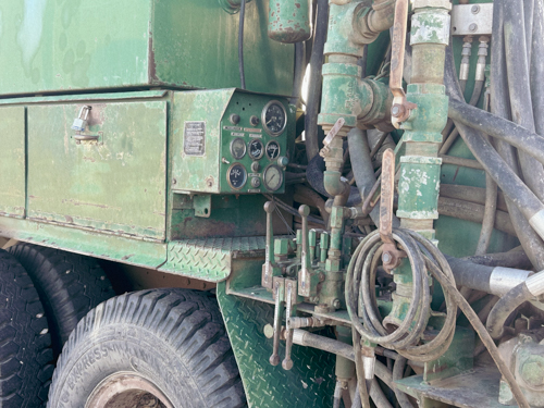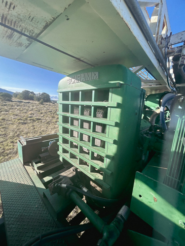 This is a rugged 1978 T64 Schramm Drilling Rig mounted on a 1978 GMC truck. While both the truck and drill engine are Detroit (6V53 NA for truck, 8V71 NA for drill), the truck boasts a robust 10-speed transmission. The 1978 T64 Schramm Drilling Rig packs a punch with a powerful 600 CFM/350 PSI Leroi Twin Screw Compressor and is even equipped for mud drilling. Though it’s a reliable workhorse with a proven track record (drilling past 1,000 ft!), it currently needs some attention: the rotation gearbox’s pinion gear sockets require remachining. Overall, this vintage rig offers potential for those seeking a powerful and experienced drilling setup with some TLC needed.
