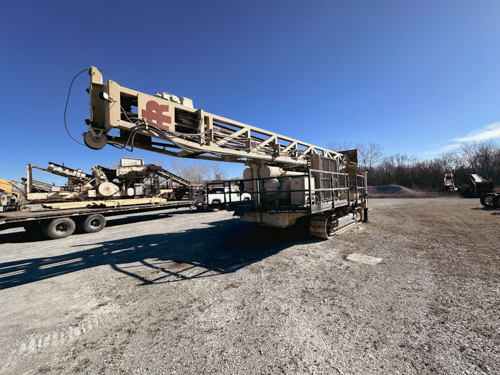 This 1991 Ingersoll Rand DM45 Drill Rig underwent a complete rebuild in 2019 and has only accumulated 3,275 operating hours since then. The 1991 Ingersoll Rand DM45 Drill Rig features several new components including an Ingersoll-Rand air compressor rated at 1070 cubic feet per minute (cfm) at 350 pounds per square inch (psi), a Cummins KTA19-C deck engine, a new drill mast/tower, Caterpillar 225-B undercarriage (crawler tracks and gearbox), hydraulic pumps and motors, and an FMC E01413C water injection pump. The rig is specifically configured for 4-1/2″ drill pipe. The installed cost for the new components includes $46,000 for the air compressor, $77,000 for the deck engine, and additional costs for the other new components.