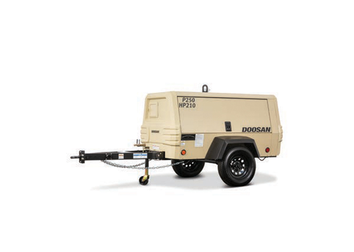 With dual-pressure and flow ratings, the indispensable Doosan P250 / HP210 Air Compressor serves as two compressors in one. Able to increase productivity for a wide variety of jobs, including general construction, abrasive blasting and pipeline pressure testing, the Doosan P250 / HP210 Air Compressor is also ideal for powering hand-held pneumatic tools. A robust frame, drawbar and independent suspension assures stability on and off the road. Its spin-on oil separation system offers the easiest and quickest maintenance in the industry. In addition, LED backlit gauges and durable engine start/push controls promote long-term, user-friendly operation.