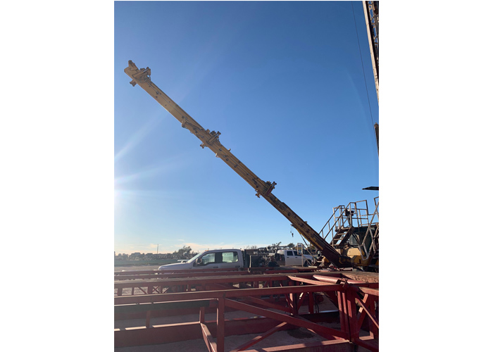 - Rectangular steel tubing telescoping mast 62′ long with dual pullback and pulldown cylinders and Standpipe.
