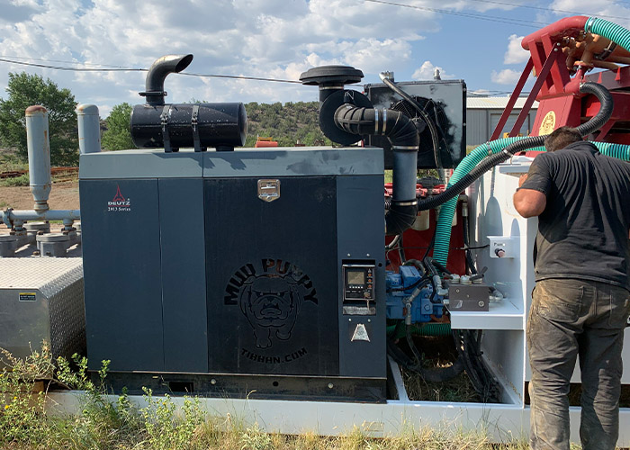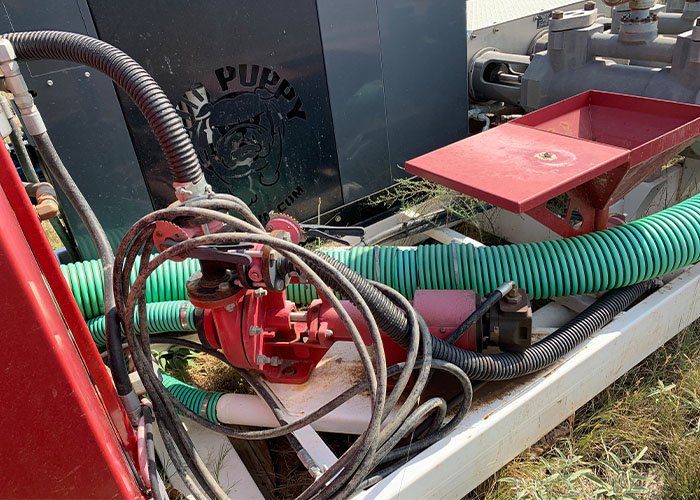 The Mud Puppy MP-255-400 sets up in just a few minutes. No settling pit to dig and fill. Only 1000 gallons of water needed to get started. The Mud Puppy MP-255-400 Saves Money, and Clean mud means a clean hole and job site. No large pit needed. Easily Switch from Air to Mud. Pump, Drill string, and Swivel all last longer with clean mud. Mix only the amount of mud needed to drill the hole.