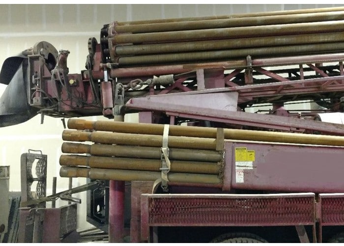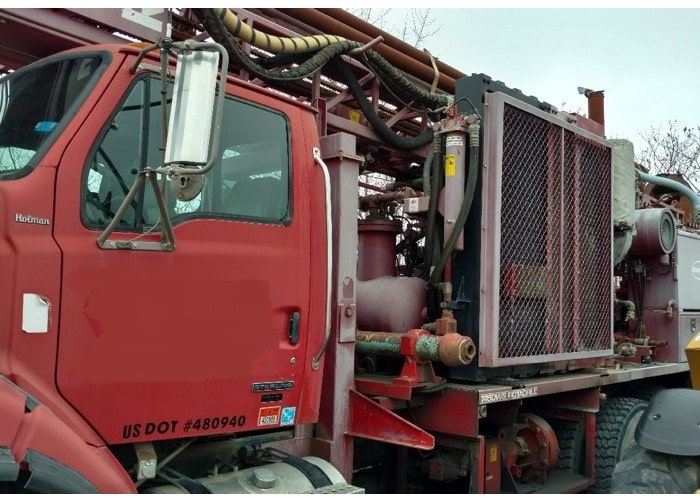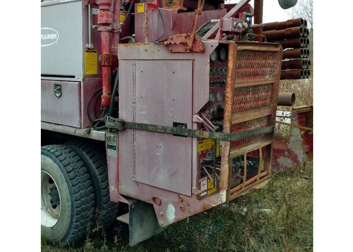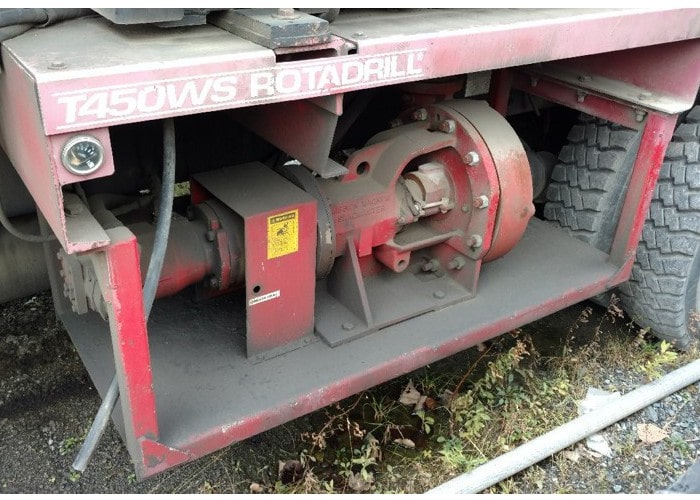 The 2005 T450WS is a compact, maneuverable truck mounted drill rig with a large volume, high pressure air compressor. The 2005 T450WS has a deck mounted diesel engine provides reliable power for all hydraulic and air systems.
